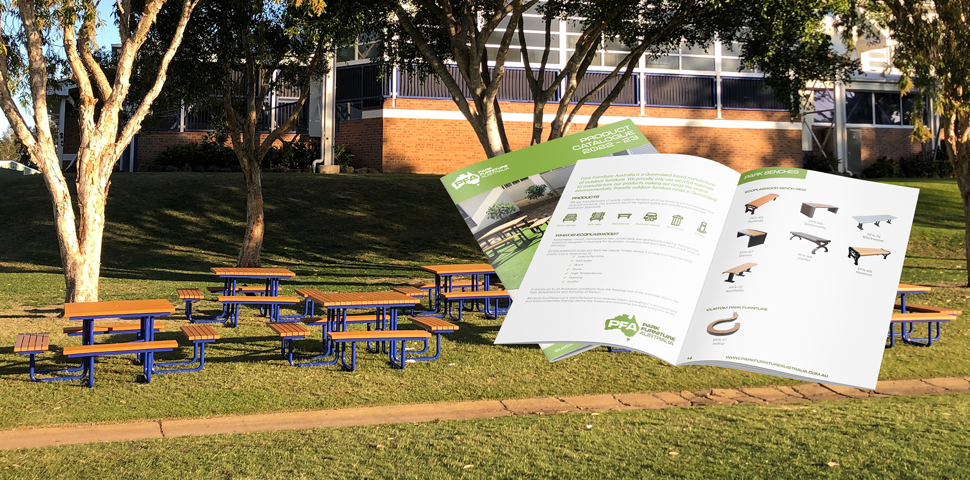 Park Furniture Australia is a Queensland based manufacturer of outdoor and street furniture. We proudly only use recycled materials to manufacture our products making our range the largest environmentally friendly outdoor furniture range in Queensland.