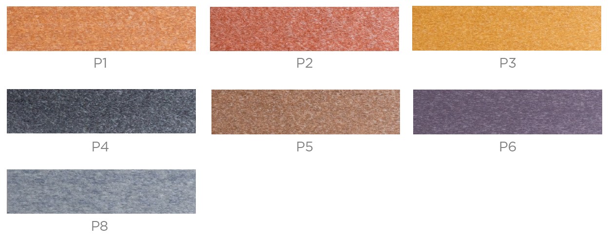 Note: Colours shown in this colour guide are a digital representation only; colours, shades, and textures may vary on finished product.